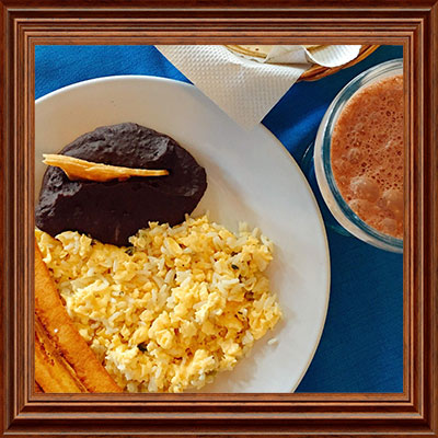 Fritos, sobre arroz y bañados con salsa de frijol y un toque de chipotle